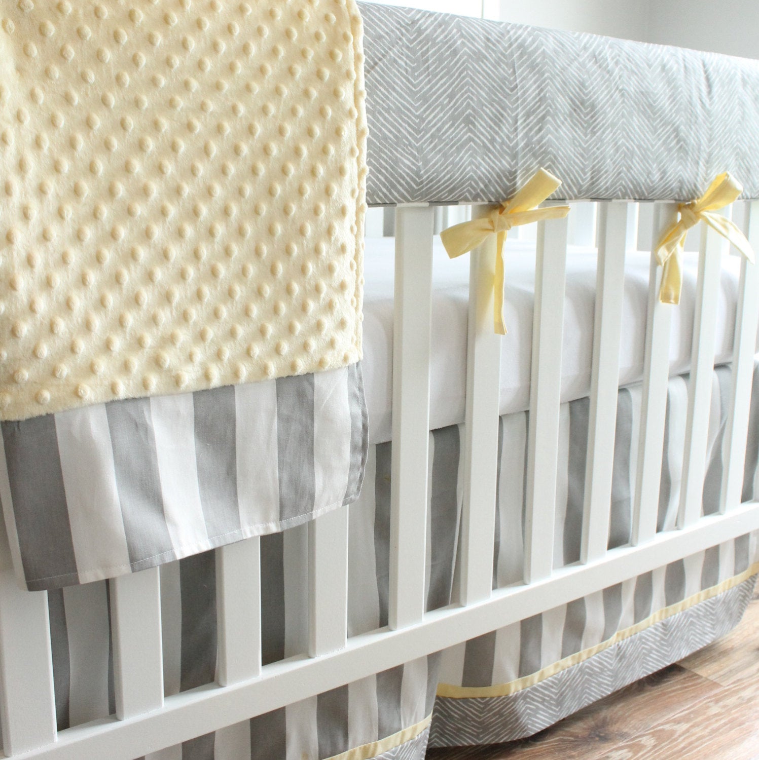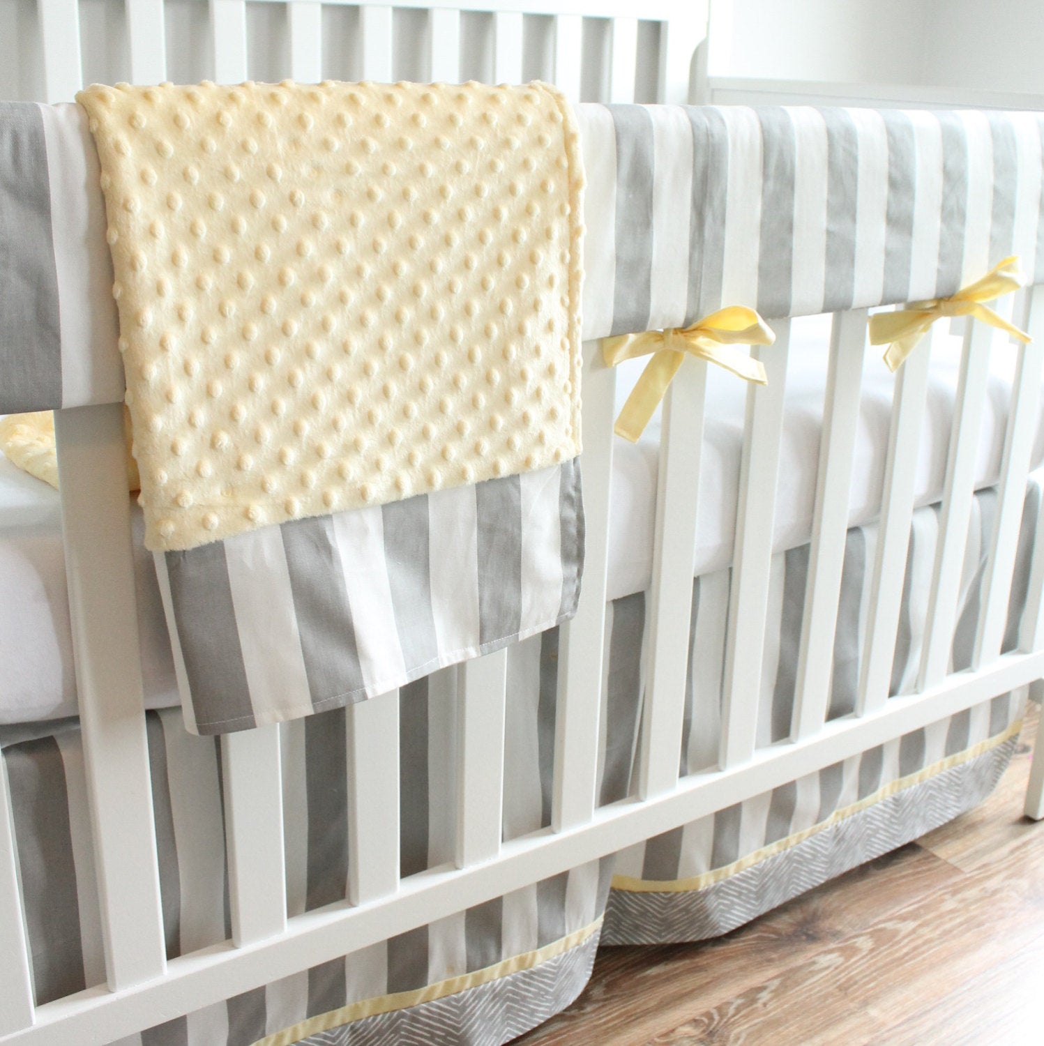 Gray and Yellow Stripe Bumperless Crib Bedding Set